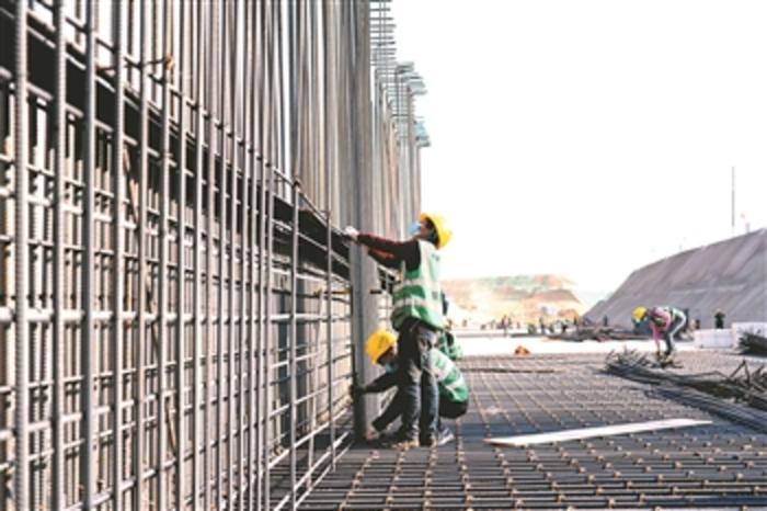 图为工人在河北雄安新区容东片区综合管廊项目建设现场施工(3月17日摄)。