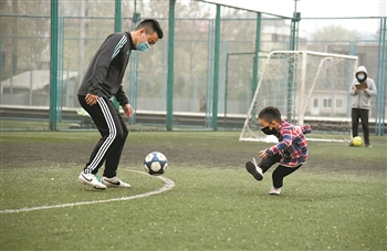 3月24日,山东省体育中心发布公告,自3月26日起健身场地有序开放。图为市民在山东省体育中心足球场踢足球。 新华社记者 王凯 摄