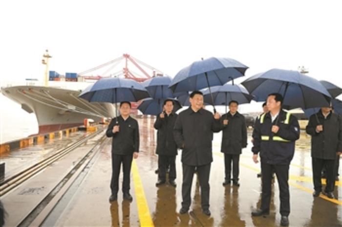随后,习近平乘车来到穿山港区2号集装箱泊位,冒雨察看了码头现场集装箱作业场景,了解港口作业情况。习近平强调,港口是基础性、枢纽性设施,是经济发展的重要支撑。宁波舟山港在共建“一带一路”、长江经济带发展、长三角一体化发展等国家战略中具有重要地位,是“硬核”力量。要坚持一流标准,把港口建设好、管理好,努力打造世界一流强港,为国家发展作出更大贡献。