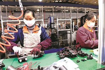 4月2日,工人在福建爱的电器公司装配车间忙碌。