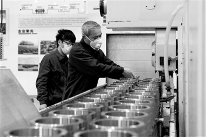 4月3日,工人在位于湖北襄阳的江山重工生产车间工作。