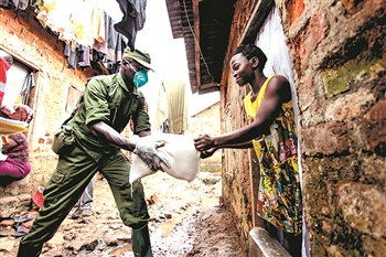当日,乌干达政府开始向150余万因疫情被“封锁”在家的城市贫困人口分发救济食物。