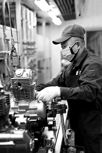 宗申发动机生产线上工人正抓紧生产。黄仕强 摄