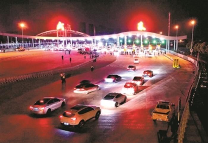 4月8日零时,武汉武黄高速武东收费站准时开放,准备离汉的车辆依次驶出。本报通讯员 刘中灿 摄