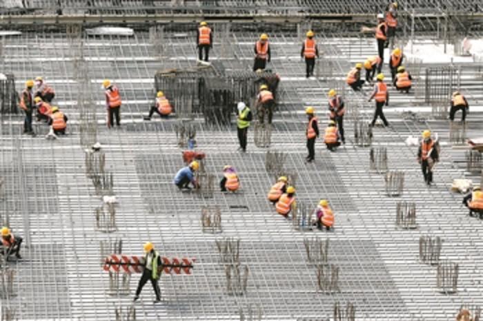 4月7日上午,北京市朝阳区奥林匹克公园西侧,中建二局国家会议中心二期项目配套部分110千伏变电站工地现场,工人们正在加紧施工。当日,工地现场开展消防实操应急培训演练,巩固工人安全生产常识,助力项目顺利进展。