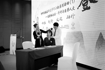 照片上,是嘉宾签名墙前面的一句话:人文是医学的一只翅膀。