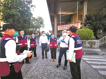 4月7日,在菲律宾马尼拉,中国援菲抗疫医疗专家组成员与菲律宾中华崇仁总医院医护人员进行交流。新华社发(中国驻菲律宾大使馆供图)