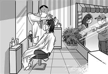 在北京安定门一家理发店,不仅店内顾客保持1.5米以上的距离分散而坐,还在门口准备了椅子,预约的顾客如果提前到店需要在门外等待。来自安徽农村的店员王伟告诉记者,“我们店内的所有排风扇都开着,门窗也全部敞开,我每天下班回家以后也都会从头到脚换一套衣服。”