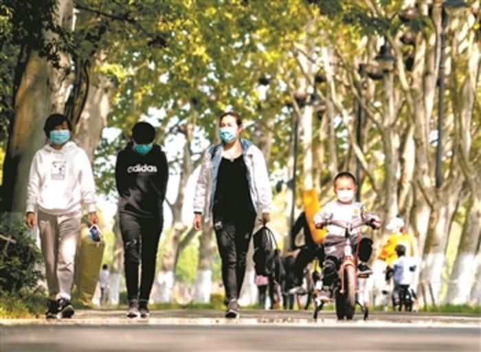 一位市民表示,现在武汉抗疫形势好转,适当出门晒晒太阳、做做运动,对孩子身体有好处。当然,出门还是要做好防护。