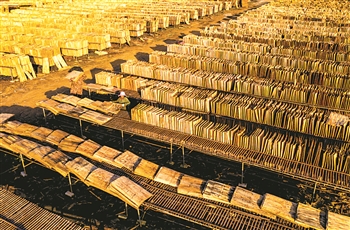 4月12日,江西省吉安市新干县林瑞木业有限公司员工正在晾晒板材半成品。新干县在发展林产工业过程中,积极促进产业转型升级,发展生态环保的家居板材,既满足了市场需求,又有效保护了当地林业生态环境。
