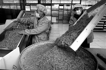 图为工作人员在河南省光山县司马光油茶园第一条油茶籽综合深加工生产线上作业。新华社发