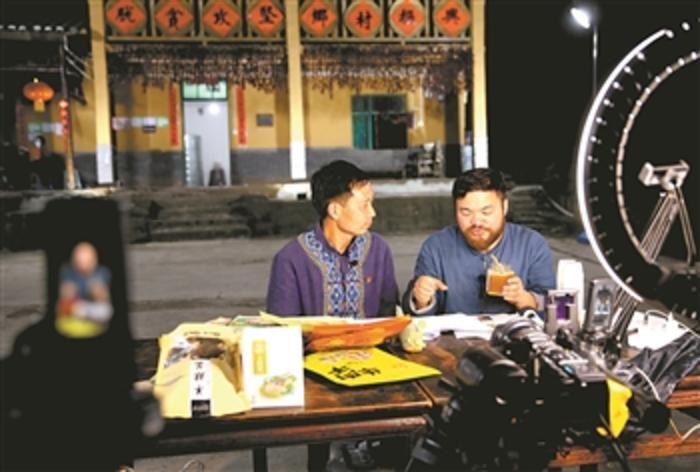当晚,重庆市石柱县中益乡华溪村举办了一场消费扶贫“慧生活直播”,邀请网络红人“乡村胡子哥”通过网络直播的方式,在线向消费者和客商推介石柱特色农产品,助推山区农民脱贫致富。 梁志强 摄(新华社发)