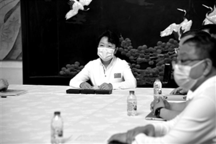 4月21日,在沙特阿拉伯首都利雅得,宁夏银川市第一人民医院院感保健部部长杜龙敏(中)在视频讲座上发言。中国政府赴沙特阿拉伯抗疫医疗专家组21日以视频连线的形式,向在沙中资机构人员、华侨华人和留学生介绍新冠疫情防控知识。新华社记者 涂一帆 摄