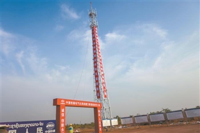 中老铁路首座通信铁塔成功组立
