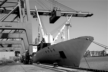 4月22日,由韩国仁川驶来的“新郁金香”轮停泊秦皇岛港集装箱码头卸船,由韩国发来的54标箱将从秦皇岛转港通过火车专列发往蒙古国。这标志着河北省首条“韩中蒙”海铁集装箱国际联运专线正式复航。