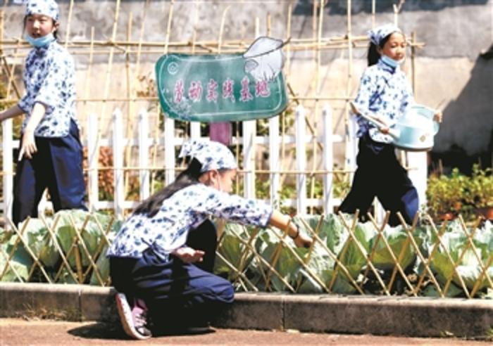 4月29日,浙江诸暨上联小学五年级的学生在学校“花样农场”内劳动。
