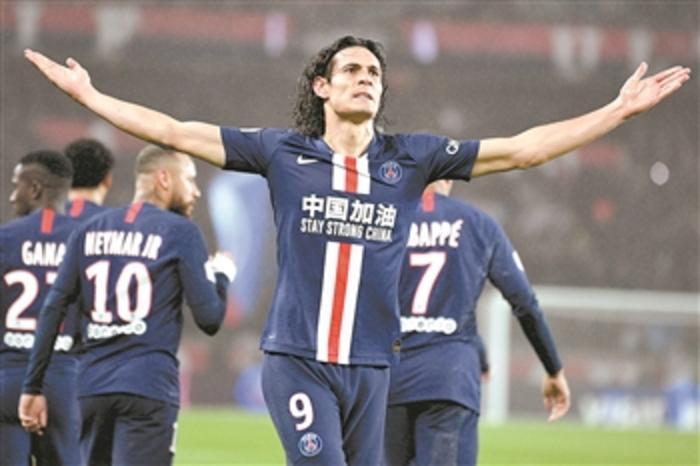 4月30日,法国职业足球联盟召开会议投票后决定,正式结束2019-2020法甲和法乙联赛,并将法甲冠军颁给目前的积分榜领头羊巴黎圣日耳曼队。这是2020年2月23日,巴黎圣日耳曼队球员卡瓦尼在比赛中庆祝进球。新华社发(杰克·陈摄)