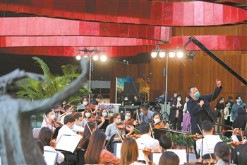 4月27日下午,国家大剧院花瓣厅,国家大剧院音乐艺术总监、指挥家吕嘉与国家大剧院管弦乐团的艺术家们正在彩排,为5月2日国家大剧院“春天在线”系列音乐会——“春天的拥抱”直播做准备。据统计,直播当天这场音乐会点击量近5000万。5月9日起,为期两个月的“声如夏花”系列音乐会将与“春天在线”无缝衔接。