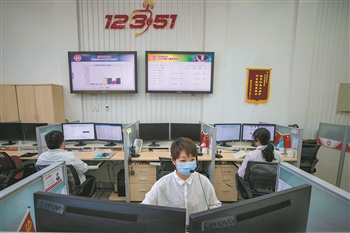 4月28日,北京市职工服务中心,话务员正为职工提供咨询服务。疫情期间,首都各级工会充分利用“互联网+”,通过“云”平台为职工提供心理咨询、法律援助、技能培训等服务。