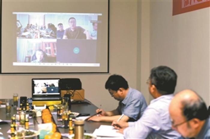 当日,在贵州食品工业协会的组织下,来自华南理工大学、江南大学、华南农业大学等多所大学生物工程、食品工程类的10名专家,通过网络视频形式,对贵州省龙里县工业园区一家企业研发的刺梨、食用菌生物发酵产品的生产工艺等进行讨论和交流,“隔空把脉”为企业发展出主意、想对策。 新华社记者 杨楹 摄