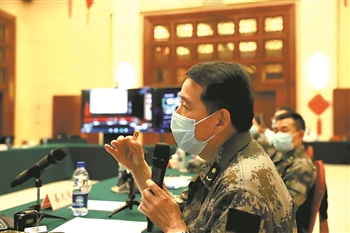 5月8日,在巴基斯坦伊斯兰堡中国驻巴大使馆,中国人民解放军赴巴抗疫专家组成员通过视频连线介绍防疫知识。 新华社记者 李浩 摄