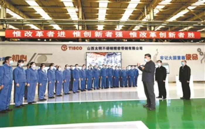 随后,习近平前往太钢不锈钢精密带钢有限公司考察调研。这家企业依托先进生产工艺,以其“超薄、超平、超硬”的产品特性取得快速发展。习近平走进生产车间,察看企业转型升级产品展示,了解企业运行情况。在光亮机组前,习近平饶有兴致地观看了厚度仅有0.02毫米的不锈钢箔材“手撕钢”产品。习近平指出,产品和技术是企业安身立命之本。希望企业在科技创新上再接再厉、勇攀高峰,在支撑先进制造业发展方面迈出新的更大步伐。现在,全国防疫工作进入新阶段,既取得重大战略成果,同时面临外防输入、内防反弹的压力,希望企业不要麻痹松懈,继续抓紧抓实抓细各项防控措施,更好复工复产,做到安全生产、健康生产,把失去的时间抢回来,努力完成今年的目标任务。