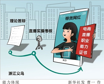 受疫情影响,直播带货成为消费新潮流。近日,浙江省义乌市人社局向19名“带货网红”颁发全省首批电商直播专项职业能力证书,第一批领证人员包括高校学生、创业者和市场经营户等。