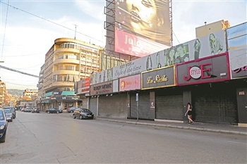 5月13日,在黎巴嫩首都贝鲁特,一名行人走过暂停营业的店铺。
