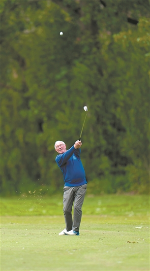 5月13日,一名高尔夫爱好者在曼彻斯特的一家高尔夫俱乐部打球。5月13日起,英格兰的高尔夫球和网球场地被允许恢复营业,不过保持2米的社交距离依然是首要原则。各项目管理机构也已迅速制定相关细则,以确保健身地不会成为感染源。