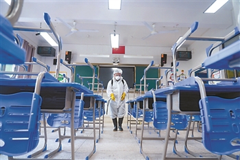 5月18日,江西南昌市各小学、幼儿园即将全面返校(园)。为保障孩子们的健康,当地各小学正在进行防疫物资的储备并进行校园各区域公共设施的全面消杀工作。