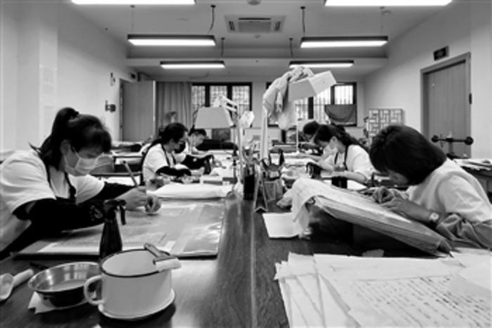 天一阁藏品修复部目前有修复师14人,每年修复古籍14000余页。据介绍,修复一册古籍通常需要1至2个月,有的甚至需要1年以上。