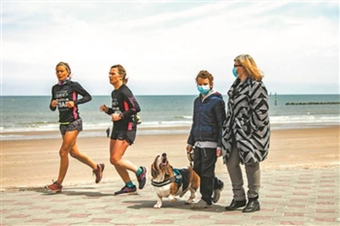 16日,法国北部部分海滩在采取卫生防疫措施的前提下重新对公众开放。