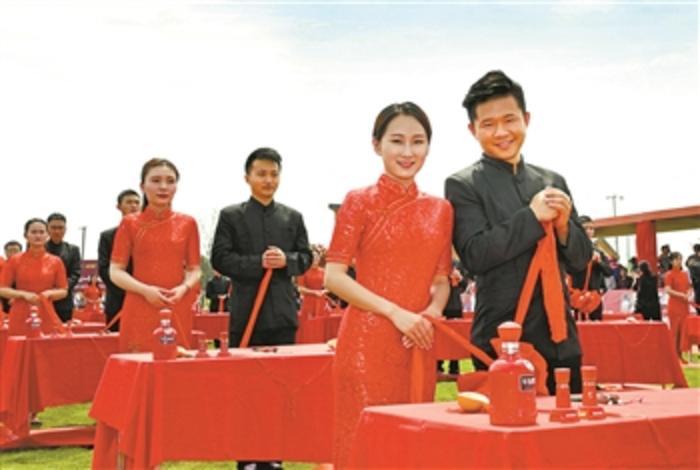 5月20日,在安徽省合肥市蜀山区小岭南,52对战“疫”新人喜结良缘。