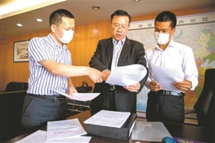 上图:5月18日,全国政协总工会界委员皮剑龙(图中)在律所与同事讨论并完善自己的两会提案。皮剑龙委员在调研中发现,随着新业态的发展,其从业群体也面临着不少问题。劳动合同签订比例低、社保缴存比例低等问题尤为突出。为此,他呼吁要加强新业态就业群体的劳动经济权益保障。