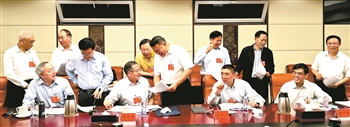 5月23日上午,政协总工会界委员小组讨论休息间隙,部分大型国企的掌舵者们。本报记者 孙德宏 摄