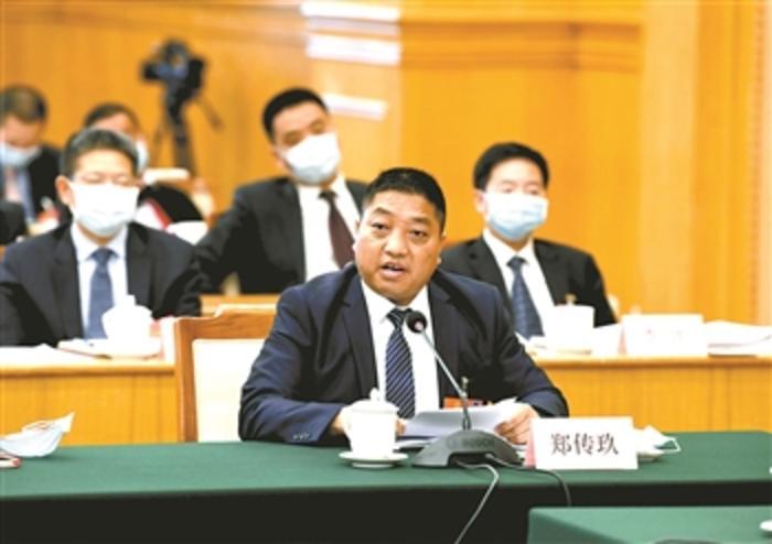 上图:5月22日,郑传玖代表在全国两会贵州代表团小组讨论会上发言。(受访者供图)