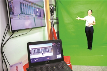 左图:中国联通北京东单营业厅为今年全国两会搭建的虚拟演播室。本报记者 王伟伟 摄