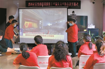5月22日上午,北京市东城区建国门街道苏州社区党委组织党员、志愿者和社区工作者共同观看十三届全国人大三次会议开幕会。