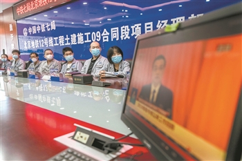 5月22日,中铁七局北京地铁12号线09标项目部,职工集体收看十三届全国人大三次会议开幕会并聆听政府工作报告。