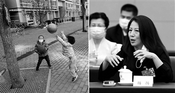 右图:全国政协委员杨扬提议重视青少年体育和社区体育。新华社记者 岳月伟 摄