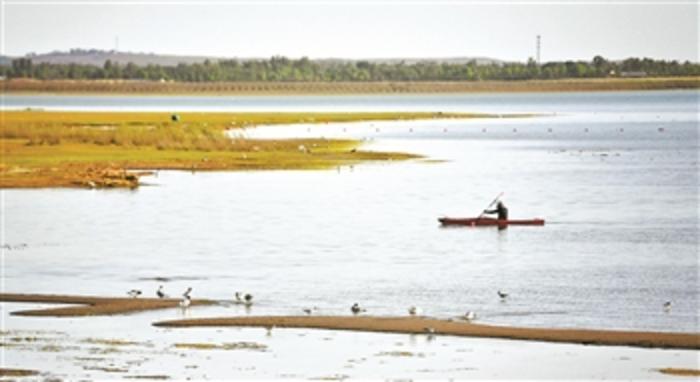 从2016年开始,陕西省协调内蒙古札萨克水库每年为红碱淖补水100万立方米,并对神木市境内入湖主要河流七卜素河主河道17.5公里进行综合治理,多措并举增加入湖水量。红碱淖的水域面积已由2016年的30.1平方公里扩大至目前的35平方公里。 新华社记者 刘潇 摄