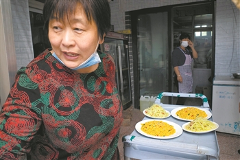 5月23日中午,位于北京市平谷区丫髻山下的一处农家院迎来了不少客人,老板娘宫素霞帮忙从厨房里拉出推车,准备上菜。