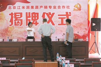 5月22日下午,平谷区江米洞村果蔬产销专业合作社揭牌仪式,岳巧云作为活动策划,在现场指挥工作。