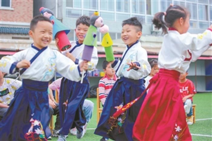 5月26日,在“六一”儿童节来临之际,江苏省如皋市吴窑幼儿园开展以“传统文化进校园”为主题的“六一”儿童节系列活动,通过表演传统文化、“慧”玩民间游戏等形式,孩子们增进了对中国传统文化的了解和兴趣。