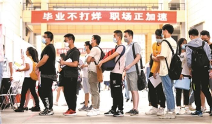 当日,一场大型招聘会在江汉大学校园举办,这是疫情发生后,武汉举办的首场高校毕业生专场线下招聘会。武汉市人社部门从报名的企业中,遴选了80多家企业参加,专门招聘高校毕业生。