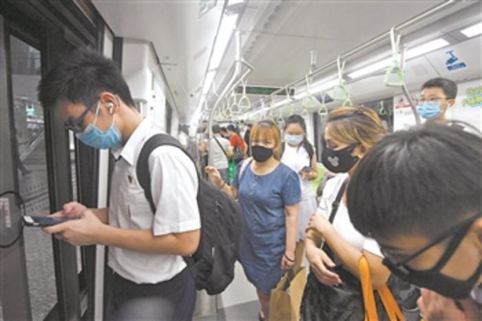 6月3日,市民搭乘新加坡滨海市区线地铁。新加坡实施的防止新冠疫情蔓延的“阻断措施”6月1日到期,政府从6月2日起分三个阶段逐步放宽限制。新华社发(邓智炜 摄)
