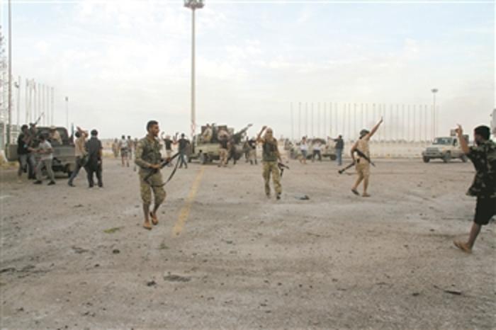 这是6月3日在利比亚的黎波里国际机场拍摄的利比亚民族团结政府军。利比亚民族团结政府军方3日宣布从利比亚东部武装“国民军”手中夺回首都的黎波里国际机场。