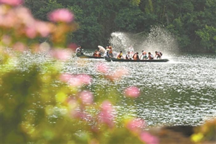6月2日,游客在云南丘北县普者黑仙人洞村湖上乘船游玩。当地通过发展乡村旅游,逐步致富。