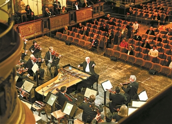 6月5日,维也纳爱乐乐团在维也纳金色大厅举行新冠疫情解封后的首场音乐会。奥地利政府日前宣布,从6月15日起将缩小强制佩戴口罩范围,进一步放松新冠疫情防控措施。 新华社发 (迪特·纳格 摄)