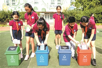 当日,北京市四年级、五年级学生返校复课,不少学校将垃圾分类列为开学第一课,让孩子们从游戏中获得知识。